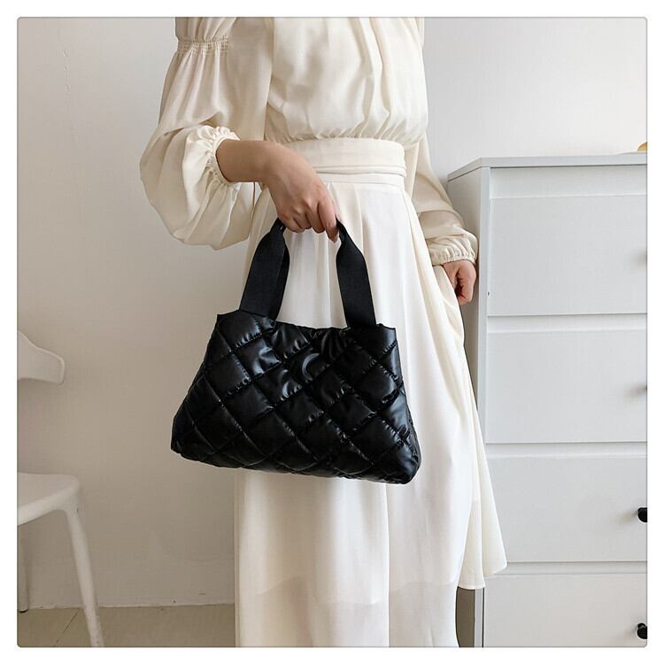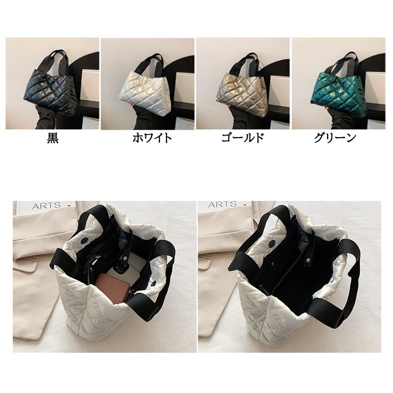 送料無料♡ハンドバッグ 光沢 キルティングバッグ 大きめバッグ 新作 レディース プチプラ(DM0592)