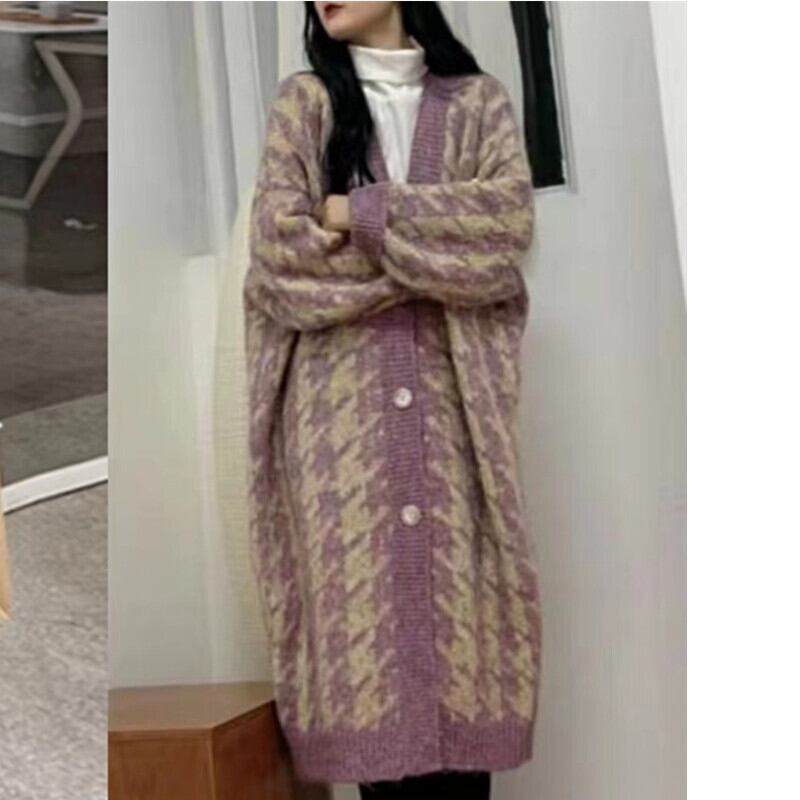 送料無料♡ロングカーディガン 秋冬 千鳥格子 レディース プチプラ(DM0593)