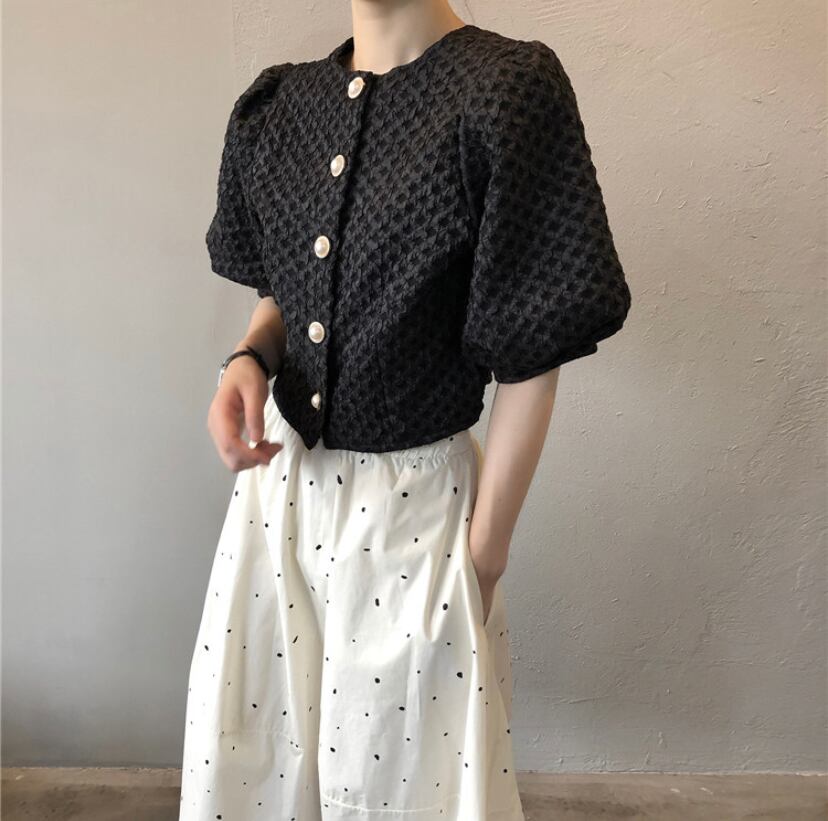 高品質♡フレンチレトロ パフスリーブシャツ ショートスタイル 半袖 トップス(DM0016)