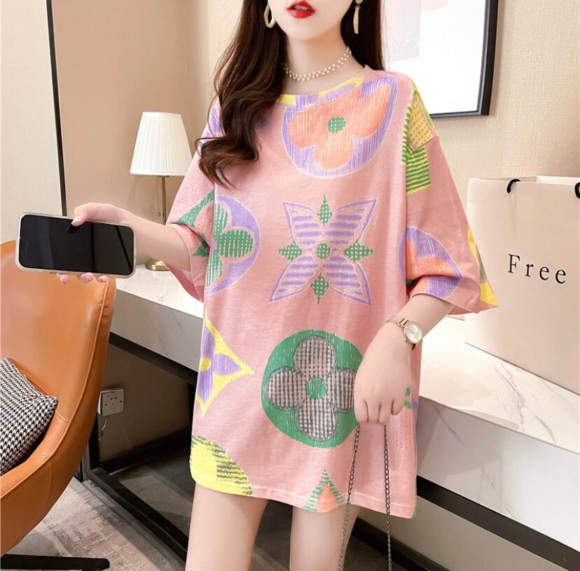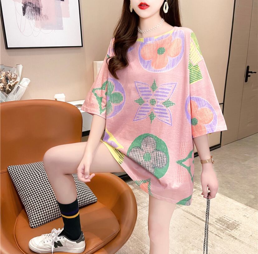 売り切れ続出!チャコール再入荷☆オーバーサイズTシャツ♡可愛いデザイン◎韓国ファッション ピンク(DM0023)