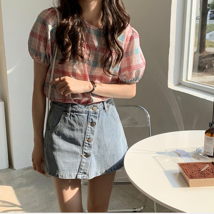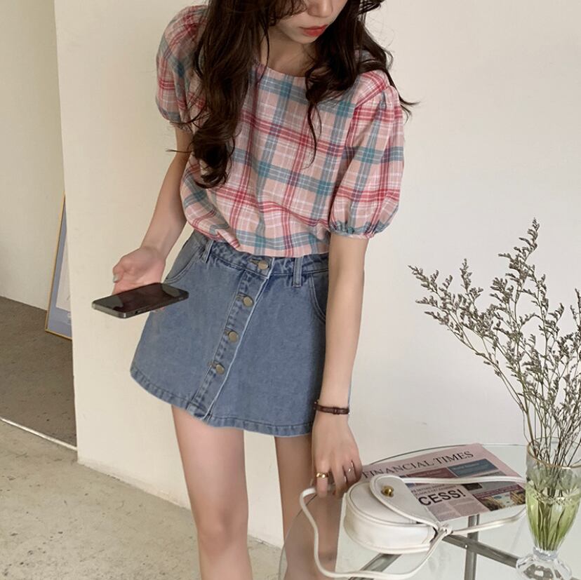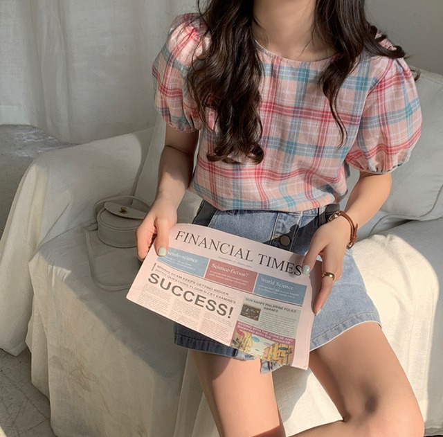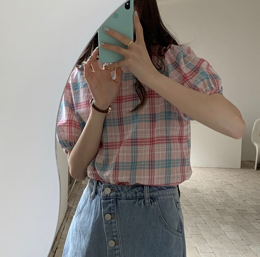 新作☆韓国ファッション☆チェック トップス ブラウス シャツ(DM0026)