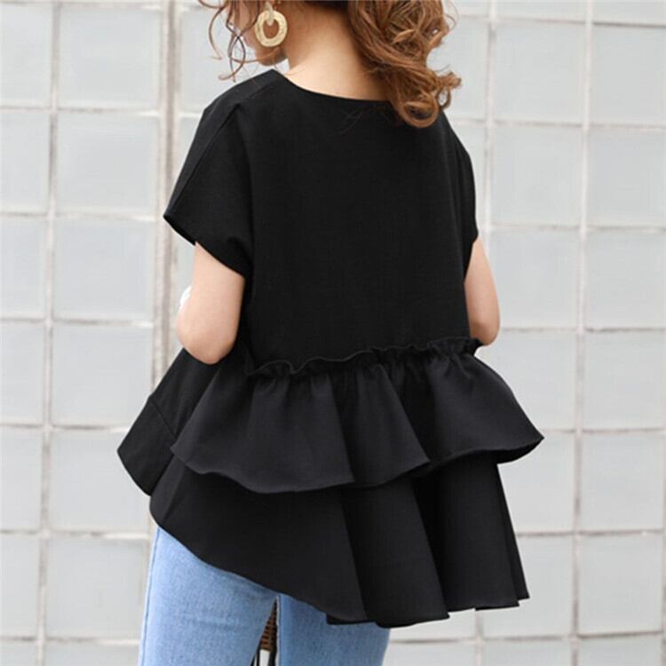 韓国ファッション♡バックフリルがかわいい♡Tシャツ シンプルコーデ トップス(DM0049)