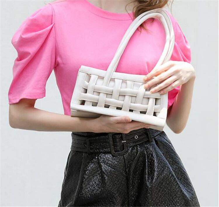 送料無料♡大人気♡編みかけが可愛いハンドバッグ♡4色 明るいカラー(DM0053)