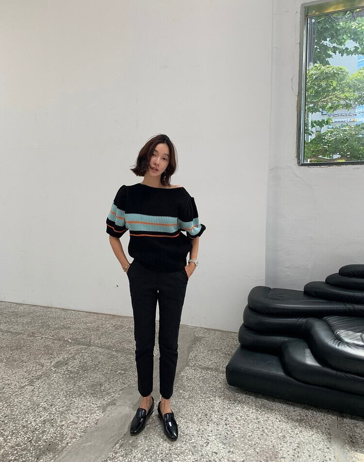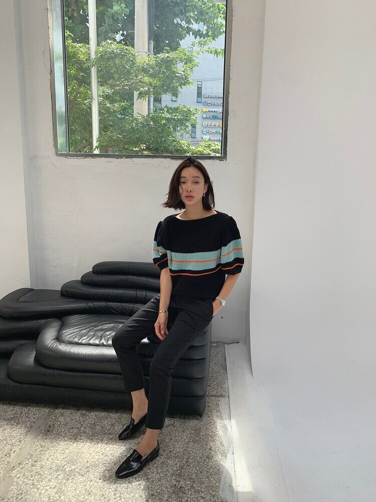 【送料無料】新作♡パフスリーブ 半袖 ニットトップス ゆったりコーデに◎韓国ファッション(DM0057)