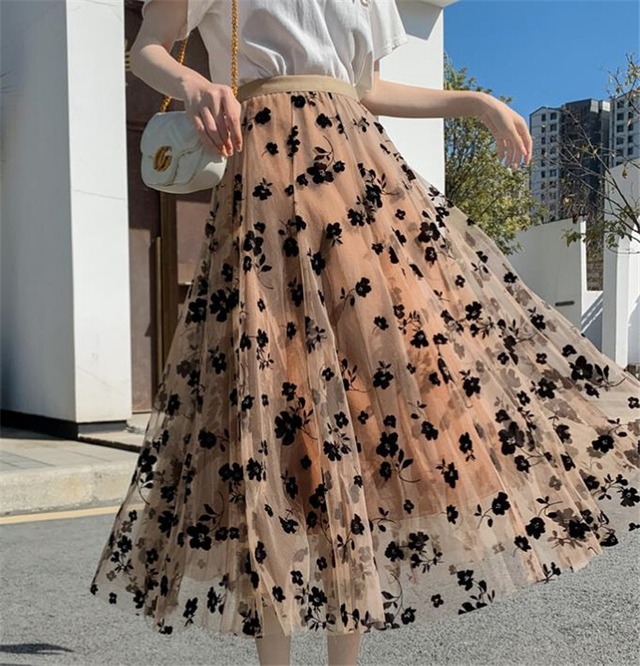 【送料無料】花柄かわいい♡ロングスカート レース オールシーズン使える♡(DM0067)