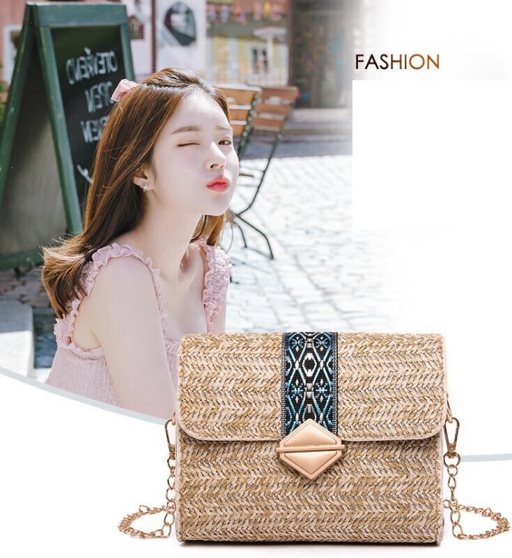 【送料無料】レディースバッグ 夏 ストローバッグ ショルダーバッグ チェーン カゴバッグ(DM0074)