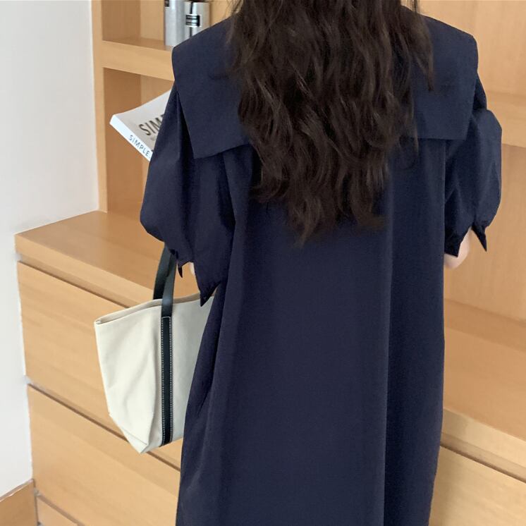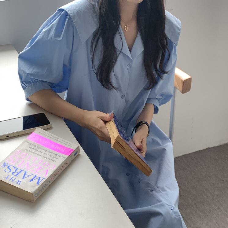【送料無料】ゆったり パフスリーブ シャツ ロングワンピース 上品映え カジュアルコーデ◎デイリー使いに♩(DM0082)