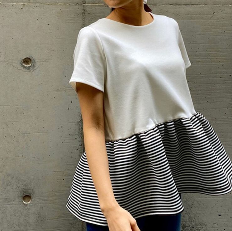送料無料♡韓国ファッション♡ボーダー フリルがかわいい♡Tシャツ ホワイト シンプルコーデ(DM0084)