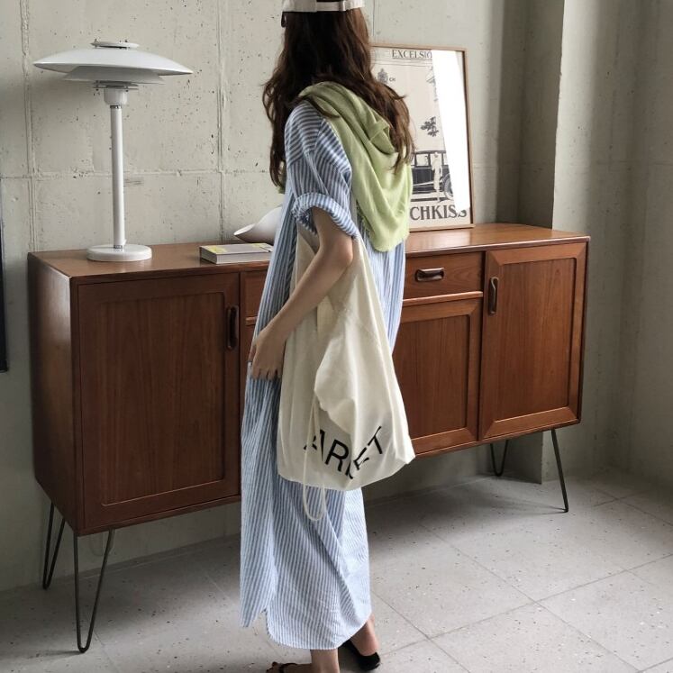 【送料無料】ゆったり ストライプ シャツ ロングワンピース カジュアルコーデ◎デイリー使いに♩(DM0087)