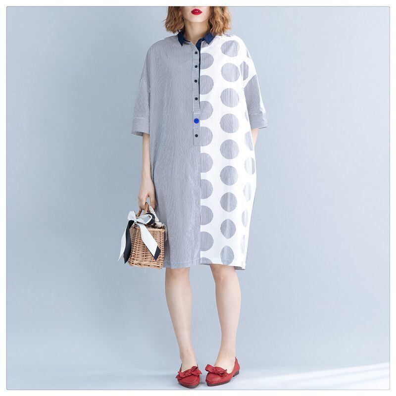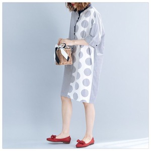 【送料無料】ストライプ ドット シャツ ワンピース カジュアル◎個性的♩膝丈ワンピース(DM0107)