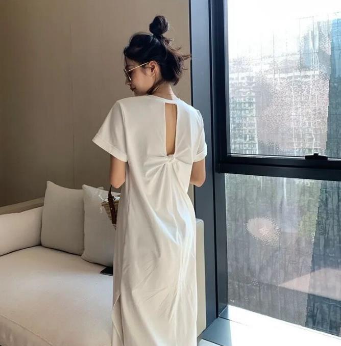 【送料無料】背中開き ロングワンピース カジュアルコーデ◎韓国ファッション♩3色(DM0111)