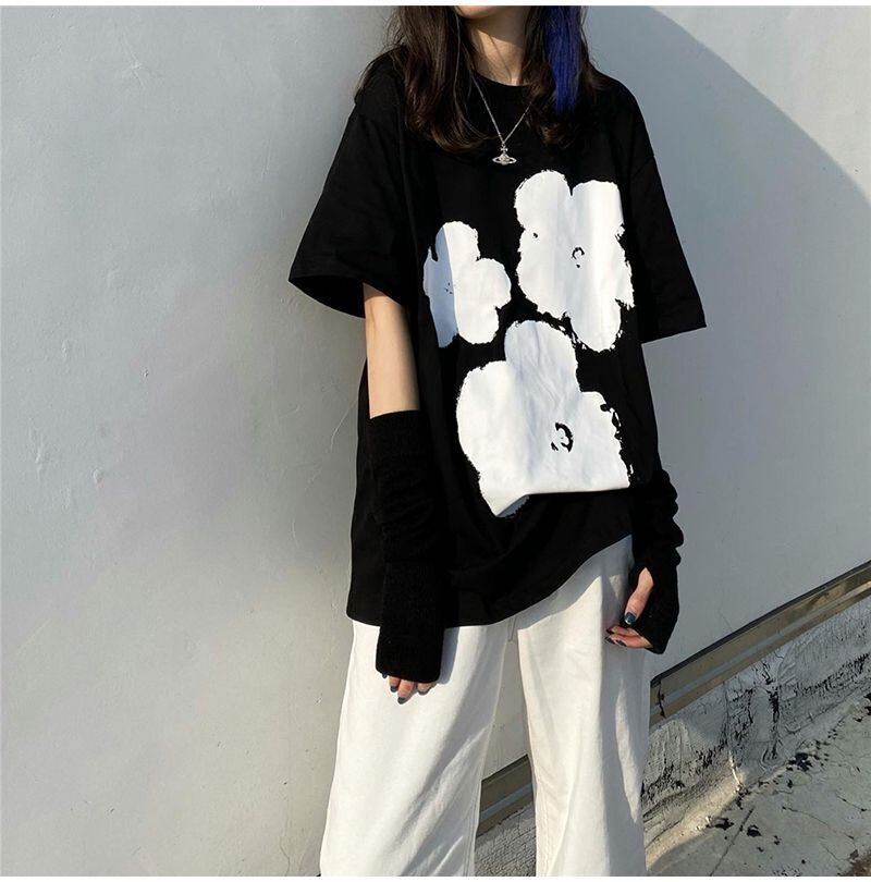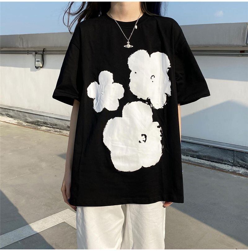 送料無料【韓国ファッション】花柄♡Tシャツ レディース 大柄◎おしゃれ♡上品な大人の女性に♡(DM0130)