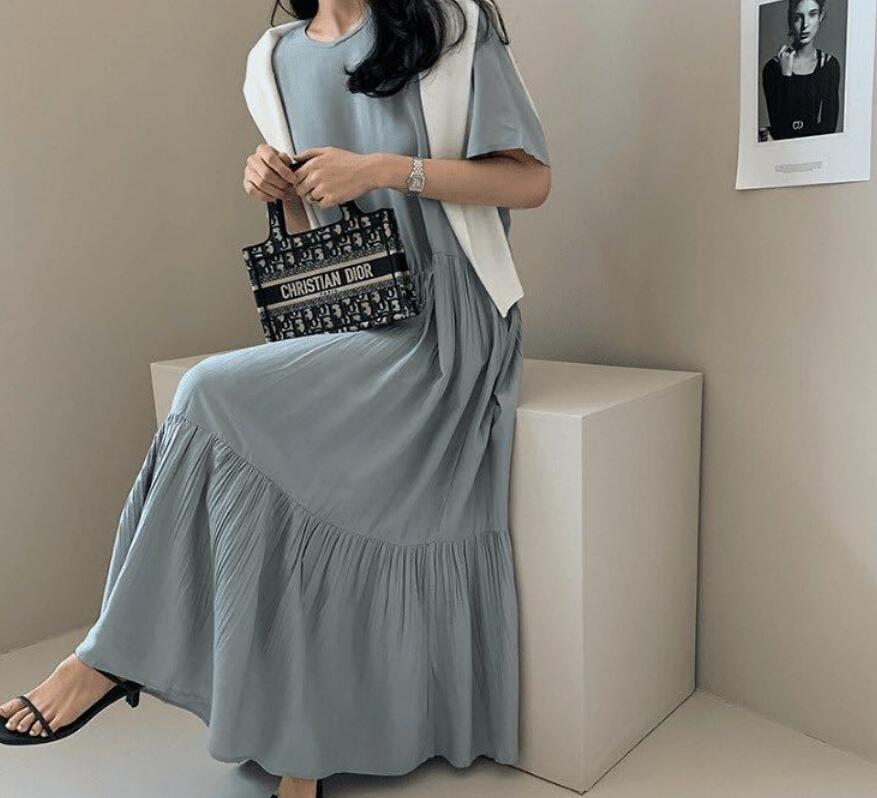 送料無料♡2021年夏新作 レディース 韓国風 ワンピース 半袖 ロング 高級感 通勤 おしゃれ 4色M-XXL(DM0142)