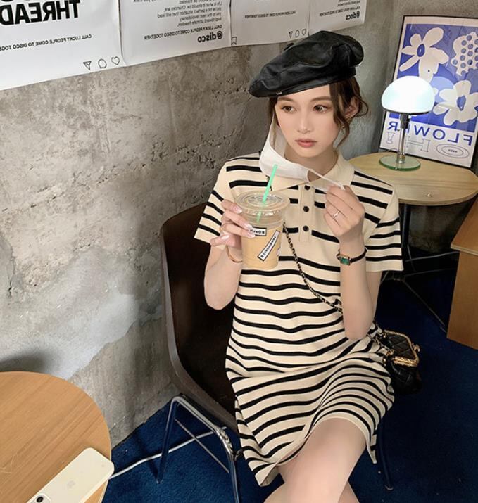 【送料無料】半袖 ボーダー ミニ ワンピース デザイン◎ポロシャツ風(DM0150)