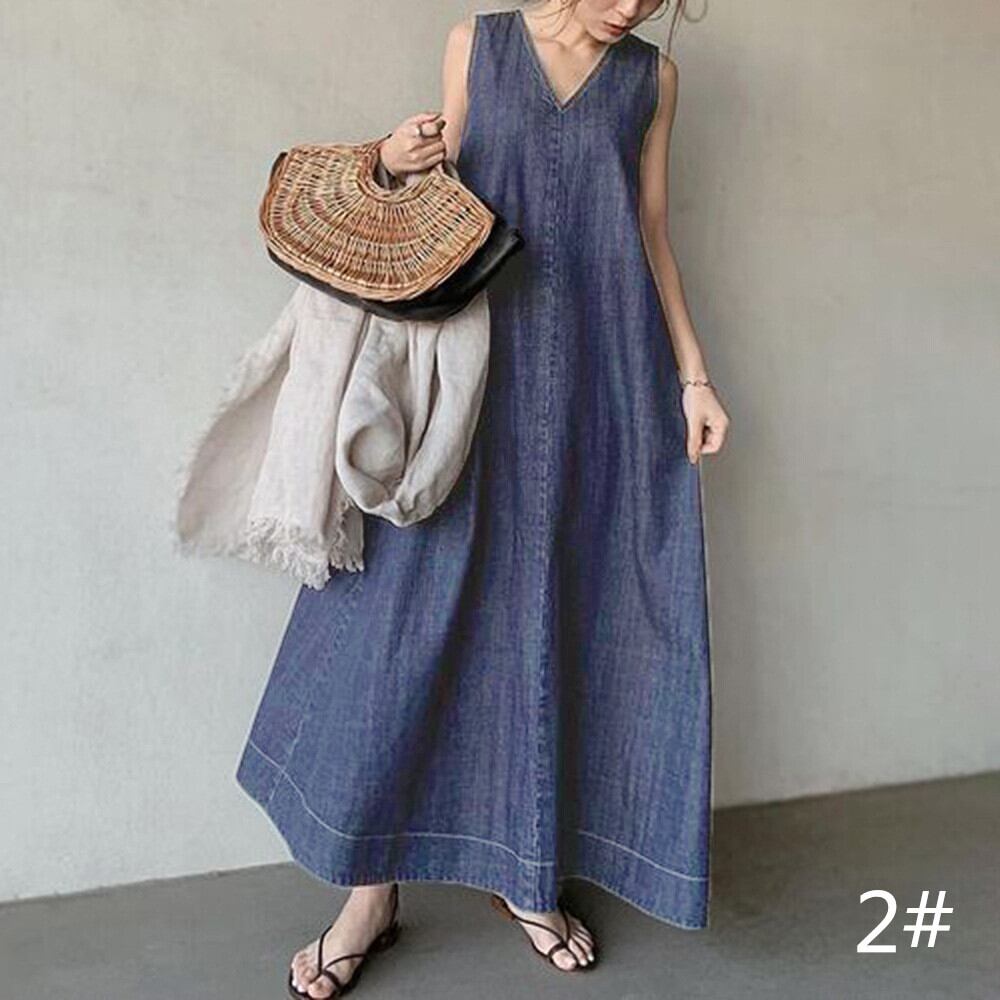 【送料無料】2022新作 デニム ワンピース ロングワンピース マキシワンピース ノースリーブ 着痩せ カジュアル オシャレ(DM0248)