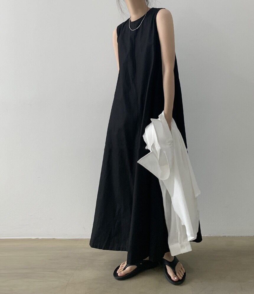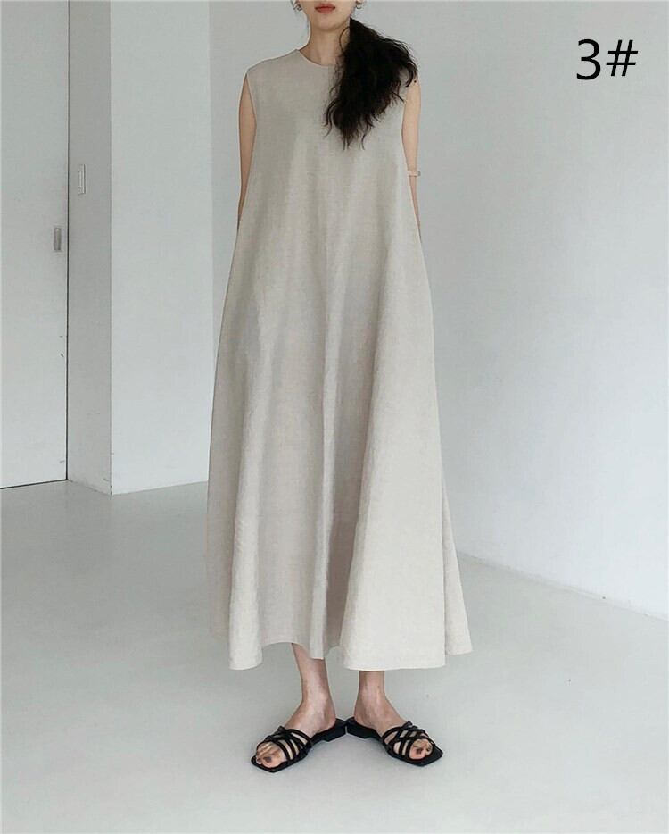 ロングワンピース 7色 ノースリーブ 春夏 ゆったり ママコーデ 韓国ファッション(DM0278)