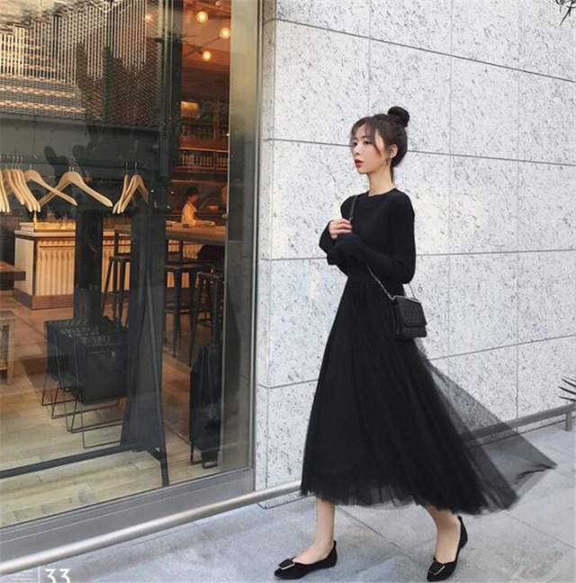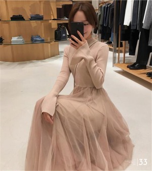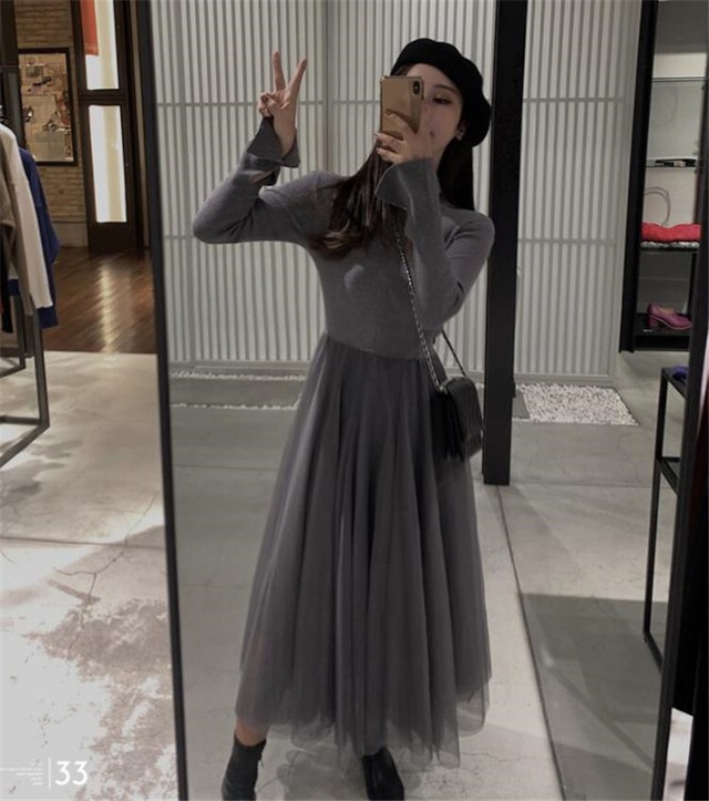 送料無料♡ワンビース 韓国風 韓国ファッション ニット チュール お出かけ デートコーデ 秋冬(DM0382)