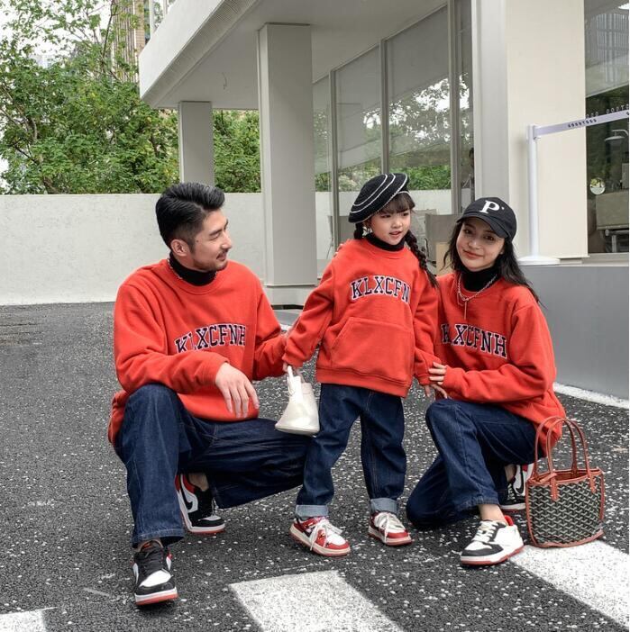 送料無料【大人用ページ】家族で親子おそろコーデに♡レッド ブラック パーカー スウェット 男の子 女の子 親子服 韓国子供服 キッズ ベビー(DM0474)